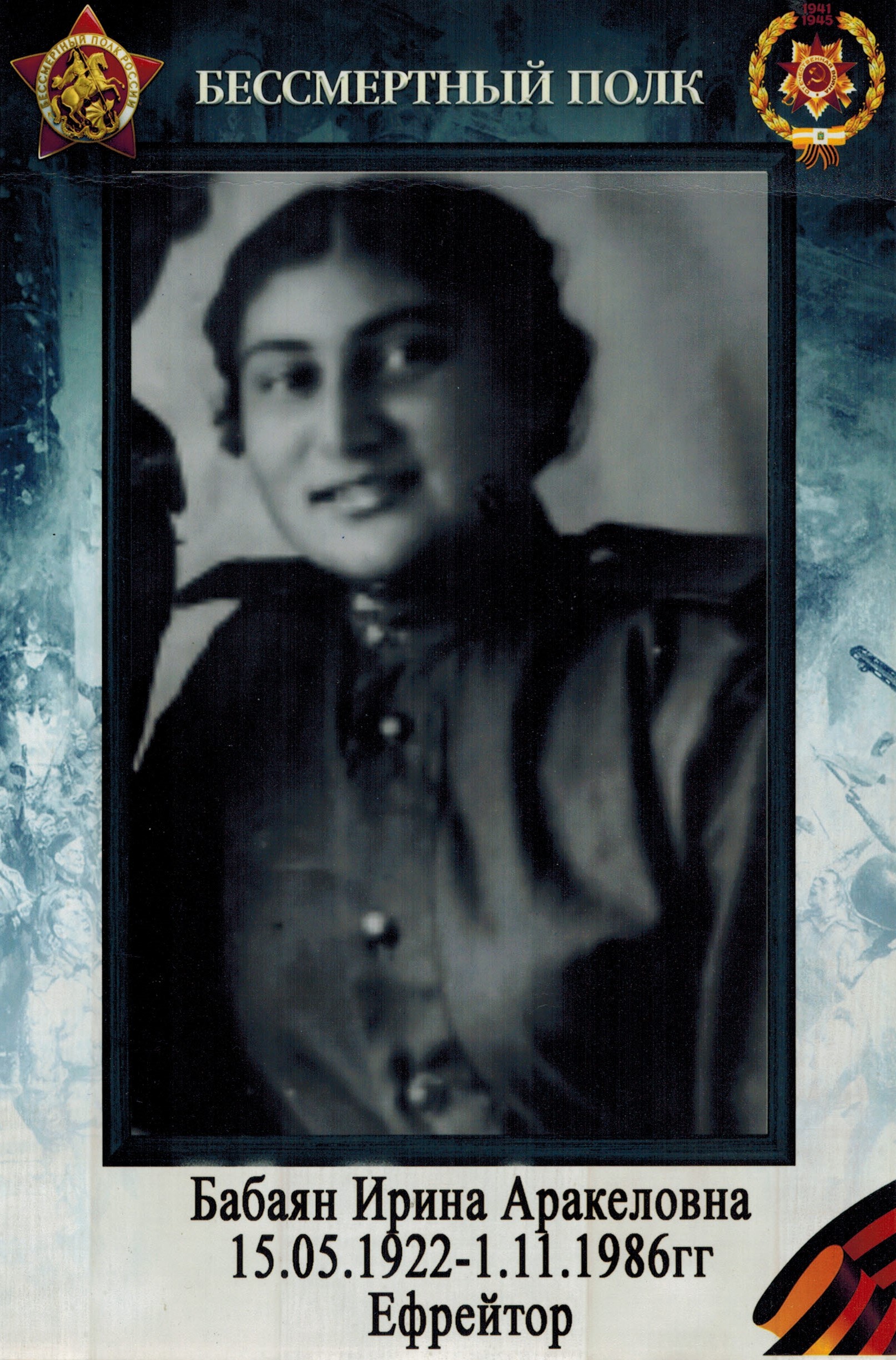 Бабаян Ирина Аракеловна родилась 15.05.1922 г. Ставропольский край, г. Кисловодск.